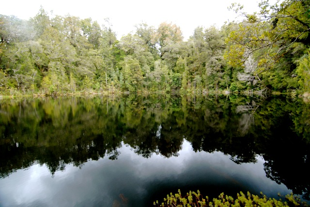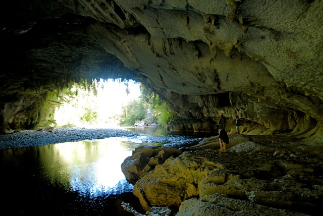A little further on is the Mirror Tarn, a still pond about the size of a rugby pitch. Tall beech trees grow right to the edge of the water, sheltering the surface from any breeze. The leaves of the beech trees fall into the water and release their tannins, staining the fresh water a dark tea hue, which allows for a perfect mirror of the sky…to stand at the water’s edge and look down into the sky is an astounding pleasure. The tracks in the Oparara Basin are easily negotiated and allow people of all ages to experience amazing natural features that would otherwise have been hidden to all but the most extreme adventurer or hardened bushman.