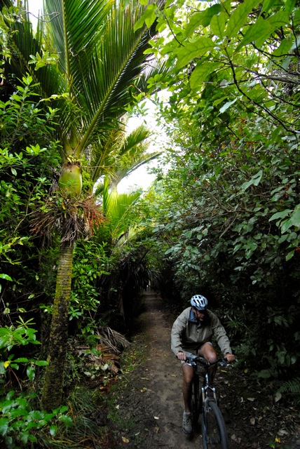 Mostly flat riding through nikau palm groves beside the beautiful white sand beaches of the West Coast and the roaring Tasman Sea. The Katipo Shelter is about halfway and there are also campgrounds at Scott’s Beach and Kohaihai.