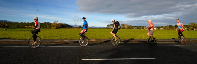 The unicyclists came together through Ken Looi’s adventure travel company, “Adventure Unicyclist” and plan to complete the ride through the Heaphy in two days. They will be met by a TVNZ film crew at the Collingwood end of the track and interviewed about their experience.