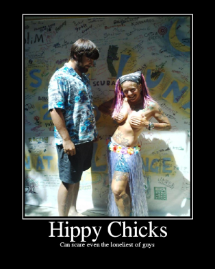 Hippies embraced the old slogan of free love of radical social reformers of other eras and so “Free love made the whole love, marriage, sex, baby package obsolete. Love was no longer limited to one person, you could love anyone you chose. In fact love was something you shared with everyone, not just your sex partners. Love exists to be shared freely. We also discovered the more you share, the more you get! So why reserve your love for a select few? This profound truth was one of the great hippie revelations.”[84] Experimentation of sex alongside psychedelics also occurred due to the perception of them being un-inhibitors[87] while others explored the spiritual aspects of sex.[88]
