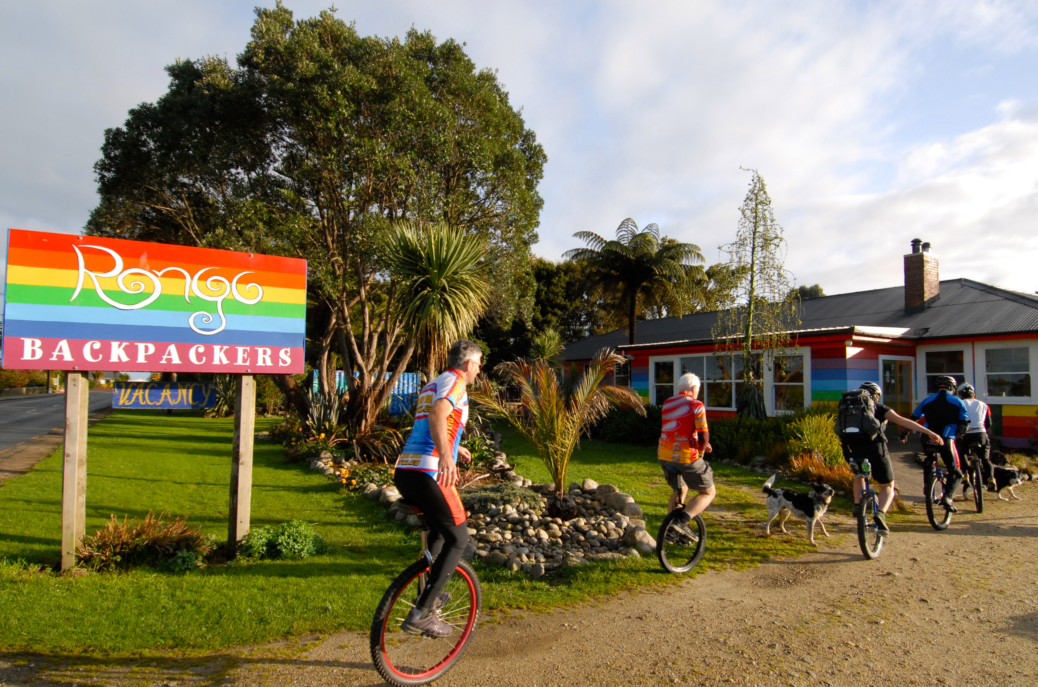 Unicyclists Arrive at Rongo Backpackers: http://www.rongobackpackers.com