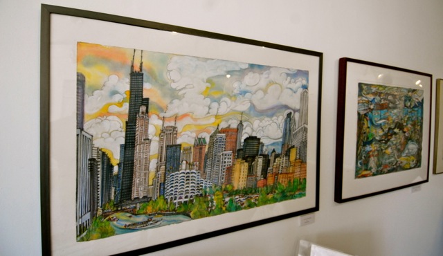 On display at Re-Invent are several Franklin McMahon originals, prints and original paintings of Chicago scenes by Mark McMahon, as well as works by Carolyn, Meryl, Drew and Elise McMahon.