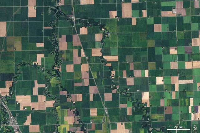 A Quilt of Corn is Keeping the Mid-West Warm: This photo shows the region in lusher times). The U.S. interior is now a dustbowl for thousands of miles.