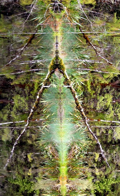 The first image was shown in an exhibition I did in Tokyo many years ago and was very popular with the Japanese. The subsequent images are taken with a 300 zoom across the tarn to where the forest meets the water. I love the imagery and the enhanced abstract nature of the photographs when they are rotated…each angle gives the photos new interpretation.
