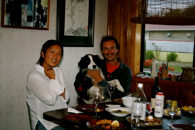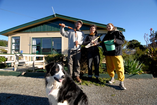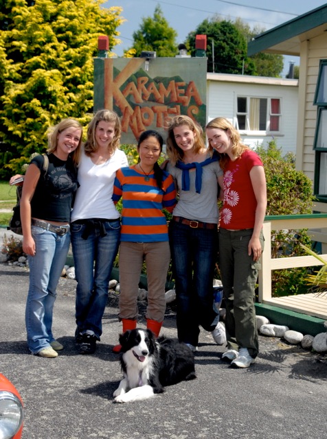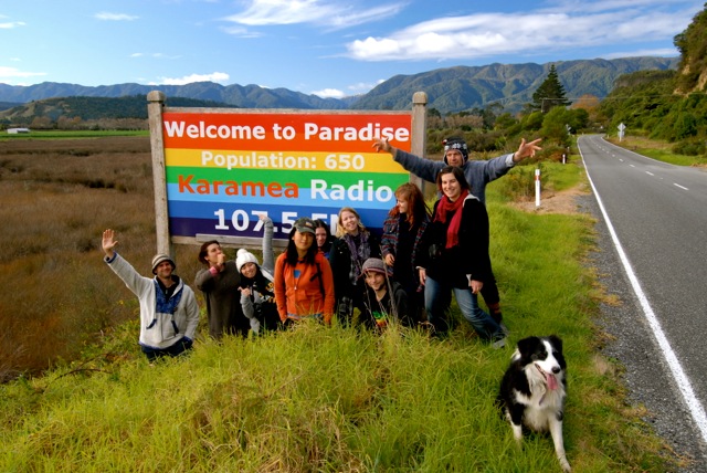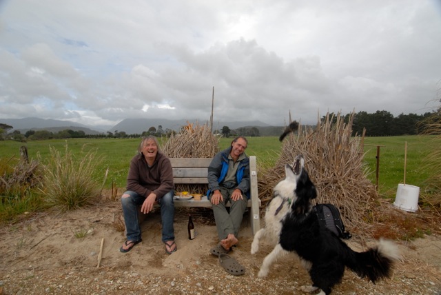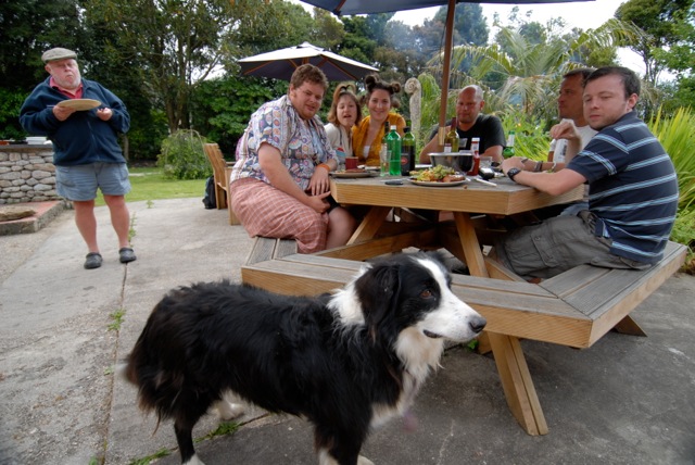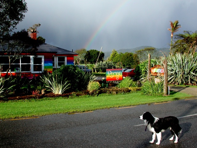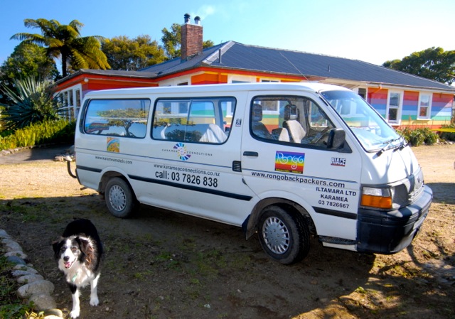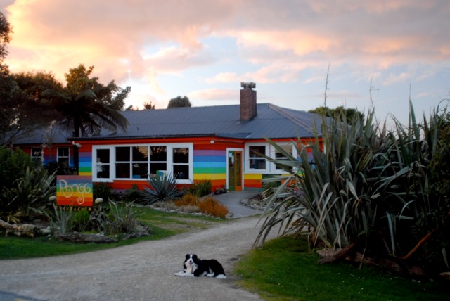 I found the Rongo backpackers thanks to Moo, I was walking at Karamea and that really smart dog showme the way to the backpackers, the many days that I decide to stay at Karamea (10 if I don’t remember wrong) I felt really confortable with Moo, is a friendly, nice and smart dog, many times I went to have a walk on the beach and Moo follow me (or I should say he guide me). I have been traveling now for years, and I think that of all the hostals, cities, hotels, countries, backpackers, places I have stay it’s the only one dog I remember, not only the name Moo, but also his good dees and lovely way to treat the tourist as me. I remember Karamea as my second home, my eyes went blury when I saw a picture of me in this post, with all the people that I meet at Aotearoa, with Moo and Paul celebrating Christmas. Best wishes for Moo!