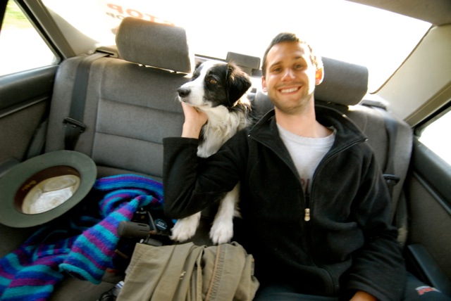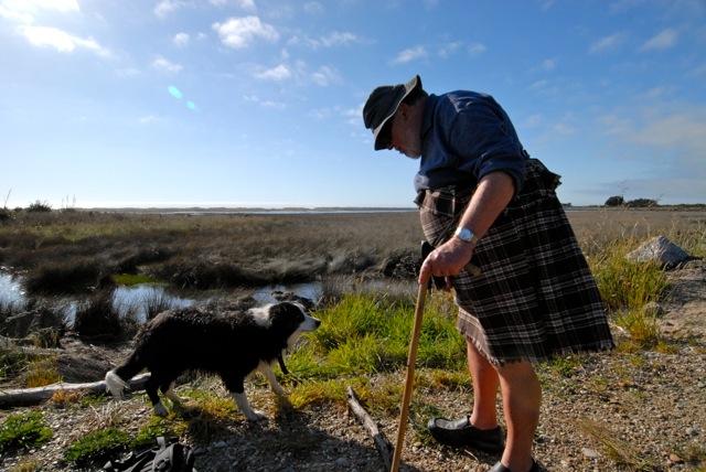 I had to go to Greymouth and he really wanted to come with me, but I was unable to take him, so I tied him up in front of my house with a bone and a bowl of water and arranged for a friend (Brian) to come by and collect him after I had gone.