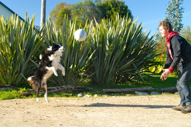Moo is not a Pitt-bull terrier, a Mastiff, a Rottweiler or a Mountain Lion…he’s a Border Collie! He likes chasing balls, retrieving sticks, working the sheep, lot of exercise, activity, mental challenge and having his tummy scratched…he is a spirited, intelligent, friendly, funny and loyal friend to myself and many people from around the world. He is an icon at Rongo Backpackers, as is trained to lead people on walks around the Karamea Estuary…he even has his own FaceBook Page (https://www.facebook.com/supermoo.thekarameawonderdog), which wasn’t started by me, it was made by one of his many friends and he now has 370 FaceBook followers…I ask you dear reader, if this dog was in any way dangerous, do you really think this would be the case?