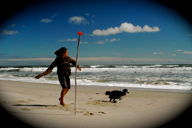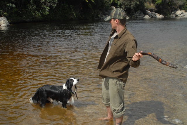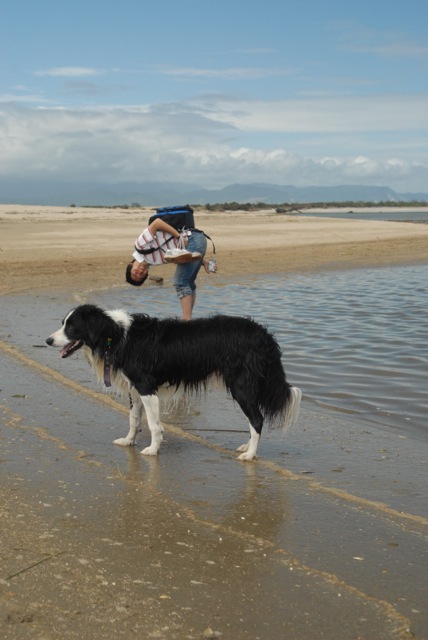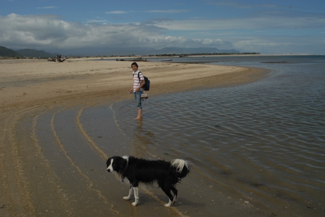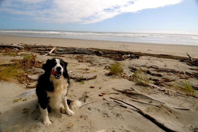 Free Super Moo. After 4 months in Karamea and around 50 or 60 roundtrip from Rongo to the estuary or the beach, Moo has never been agressive or dangerous. He starts to be old and his major hobby is running after the sticks you throw or playing with his old friend Rusty.