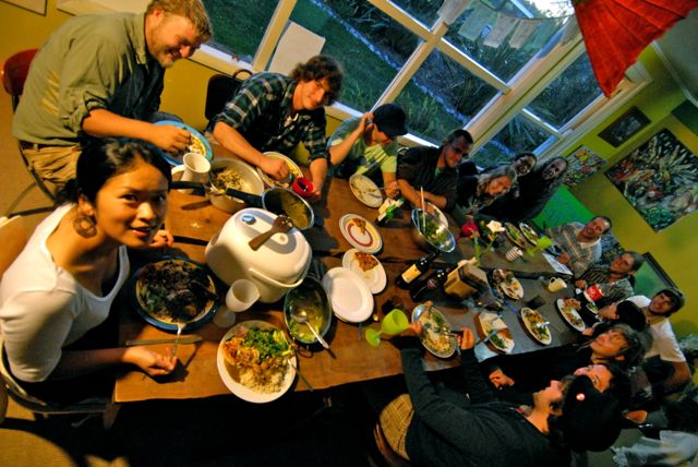 At Rongo, we have a pot-luch dinner at least once a week…Rongo is world famous for such dinners and they are VERY popular with the wwoofers and guest alike.