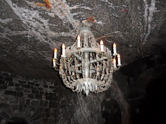 Amazingly, even the chandeliers in the cathedral are made of salt. It was not simply hewn from the ground and then thrown together; however, the process is rather more painstaking for the lighting. After extraction the rock salt was first of all dissolved. It was then reconstituted with the impurities taken out so that it achieved a glass-like finish. The chandeliers are what many visitors think the rest of the cavernous mine will be like as they have a picture in their minds of salt as they would sprinkle on their meals! However, the rock salt occurs naturally in different shades of grey (something like you would expect granite to look like).