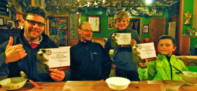 The Father and Son Team enjoy a Heaphy Conqueror’s Feast at Rongo Backpackers & Gallery in Karamea after finishing the Heaphy MTB ride.