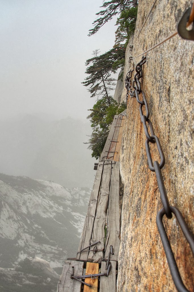This is where the path turns truly dangerous, with nothing but planks to walk on and a rail of chains to hold onto.