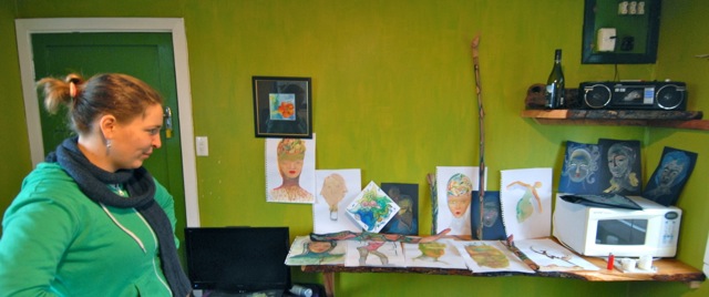 Social interaction in the evenings with the staff and guests at Rongo Backpackers & Gallery, which is also part of the LivingInPeace Project, provided her further inspiration. “I really enjoyed hanging out at Rongo surrounded by artworks from previous resident artists, watching movies in the cinema, enjoying the music on Karamea Radio, eating dinner together…great food and good conversation,” she said.