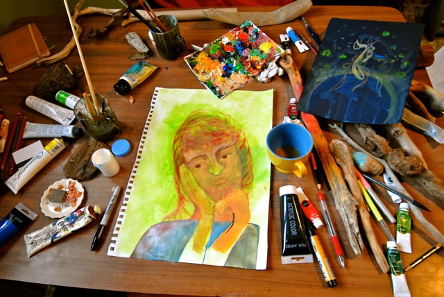 Almut showed her gratitude for the artist residency by leaving behind several of the artworks she finished during her stay, some abstract portraits and painted driftwood that was instrumental in her rediscovering her artistic inspiration. Rongo guests will be able to see her work and that of many other resident artists on display in the gallery at Rongo Backpackers.