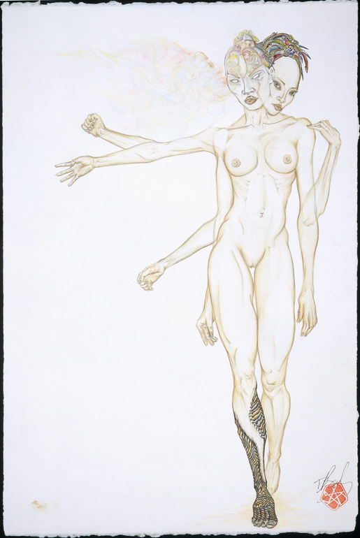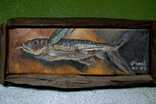 Prange got to work and produced numerous new works and also found new way to express her creativity. She collected driftwood from the nearby beach and estuary, studied the form and patterns of nature preserved in the wood. She enhanced the textures and lines by painting in concert with the art of nature and gradually recovered from her artistic malaise. She then began a series of abstract portraits that began to also select the natural patterns, shapes and designs she saw in the driftwood and in the surrounding Kahurangi National Park.