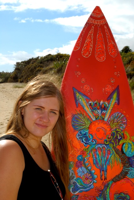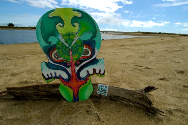 Kyle Browne welcomed the 2014 New Year in Karamea and put her artistic talents to work on the beach.
