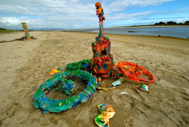 Lukac chose to show her work outdoors in the natural environs of the Karamea Estuary. Her exhibition was well attended by local people and visitors from many countries, including Germany, Belgium, Australia, Japan and Italy.