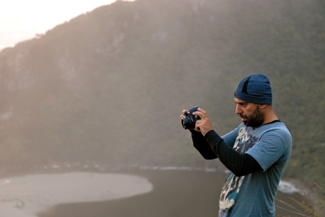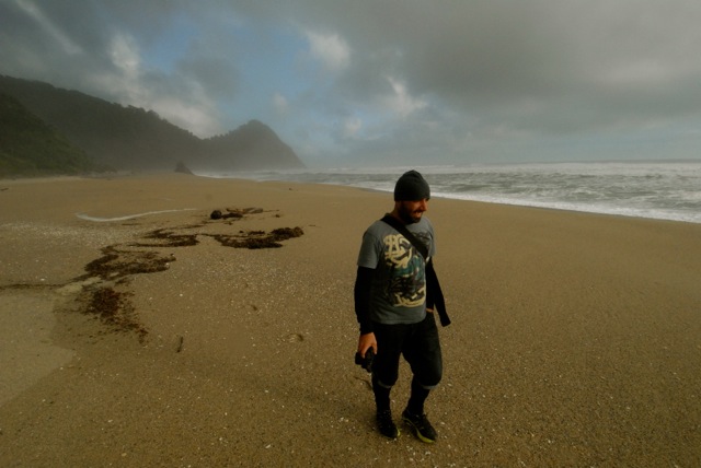 Marco Gianstefani on location at Scotts Beach on the Heaphy Track, West Coast, South Island (near Karamea).