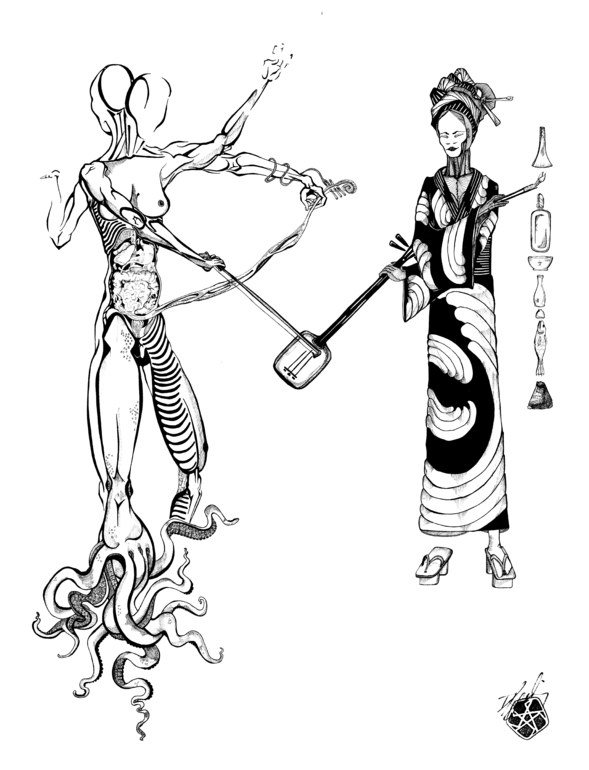 A graduate from the Montserrat College of Art in Beverley, Massachusetts, Ponzi has made a name for himself in Tokyo as a “Live Painter.” He sets up his easel at live music performances and interprets the music with a painting in front of the audience. He has also been known to body paint female dancers as they perform and has now reinvented himself artistically as the guitarist and frontman in the popular Tokyo band “Tits, Tats & Whiskers.”